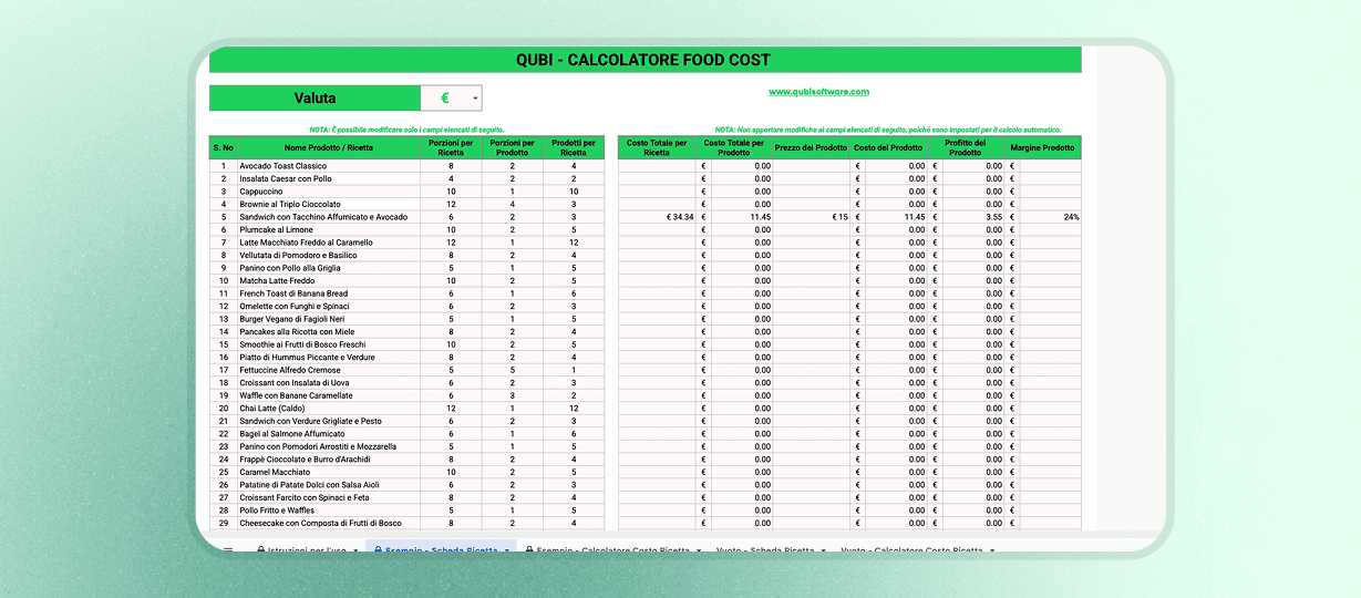 Questa sarà la base del tuo sistema di calcolo food cost: